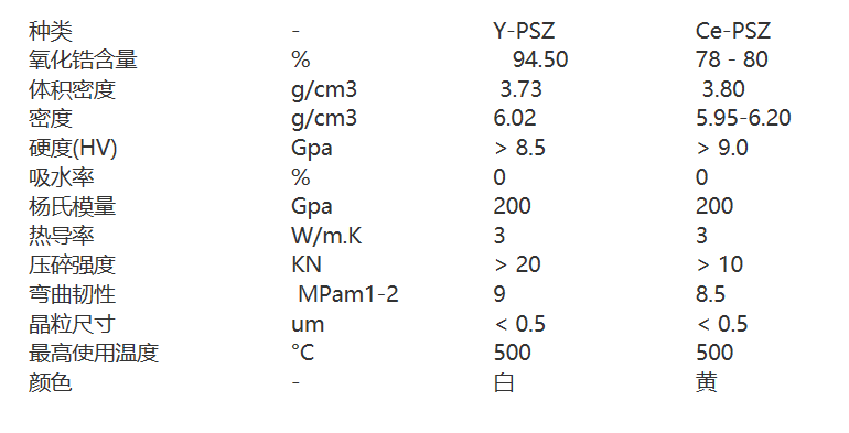 氧化鋯陶瓷磨介的主要性能參數(shù)圖表