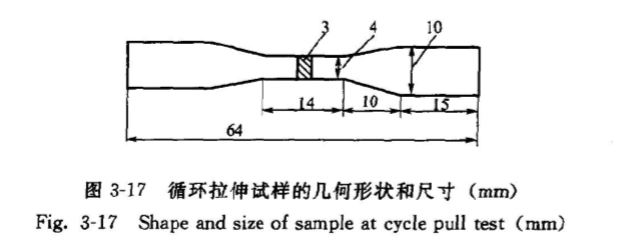 眾所周知,在較低的溫度或應(yīng)應(yīng)下促進(jìn)陶瓷超塑性變形的方法之一就是細(xì)化晶粒尺寸,而納米周瓷則是利用減小晶粒尺寸后,無序晶界的體積分?jǐn)?shù)會大幅度提高,有可能室溫脆性陶瓷將成為延性的。本研究的目的就是為了探求納米陶瓷室溫循環(huán)變形的可能行為和機(jī)理,通過熱壓方法( Fujidempace400kN熱壓爐)首先制制得得4mmX64mm×64mm的塊狀材料,然后加工成具有14mm標(biāo)距長度的樣品,它們的幾何形狀和尺寸見圖3-17。
