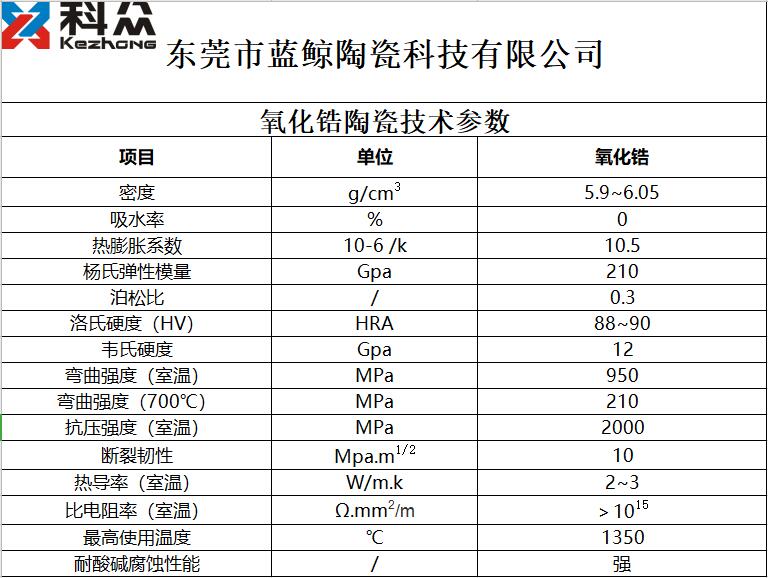 釔穩(wěn)定氧化鋯陶瓷技術(shù)參數(shù)